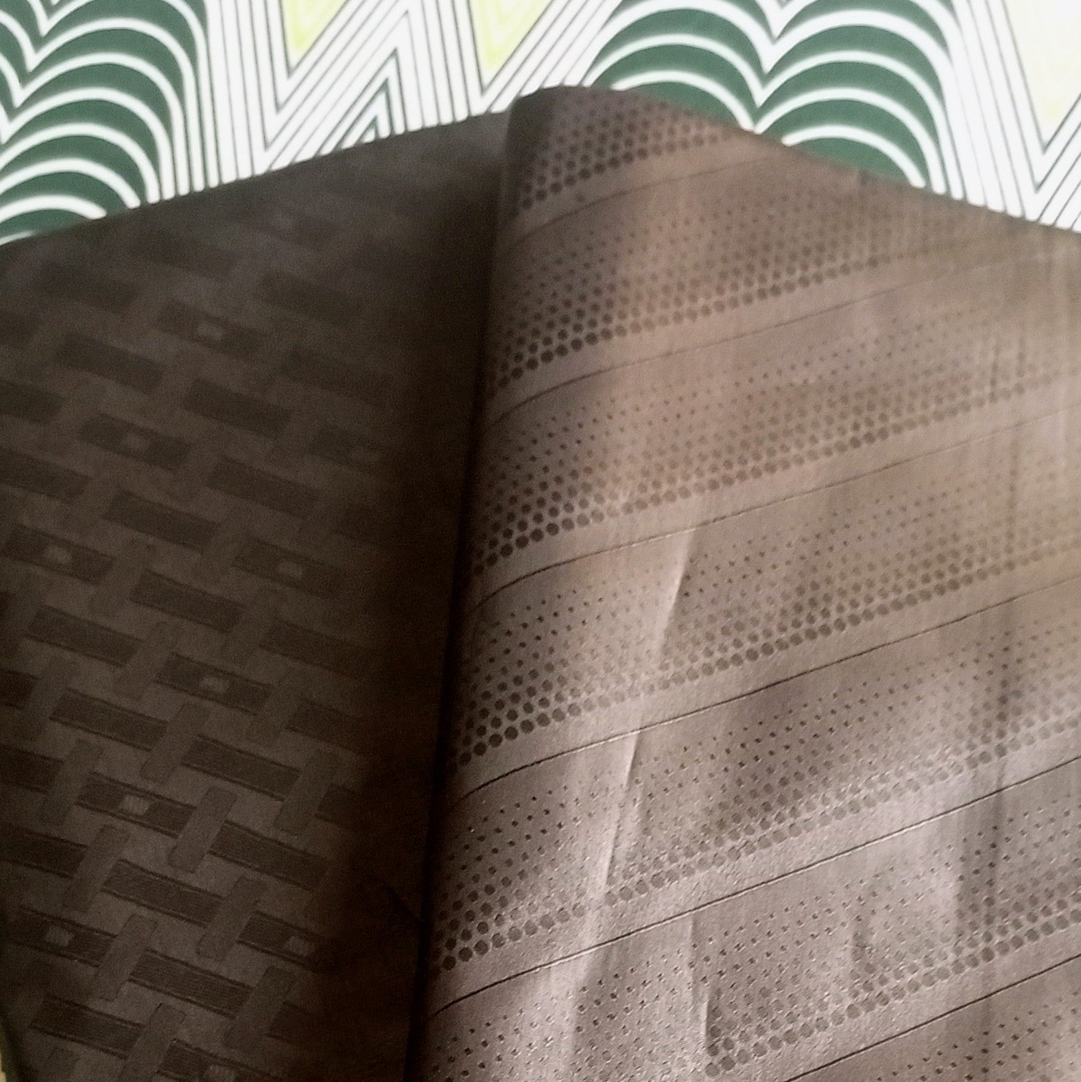 It has visible embossed patterns that are woven in. The patterns may be geometric, floral or other patterns and they give additional interest in your projects.